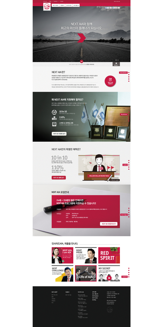 As part of a recruiting campaign, the Next AIA microsite aspires to make young people want to start a career with the company. The site design is therefore focused on a clear structure that facilitates an easy and direct approach to applying to the company. Thanks to responsive web design, the site will adapt to any user device for enhanced accessibility. The homepage features a single-page layout, so that the user can access all information at once. The content is presented using a friendly approach with a mentoring touch.