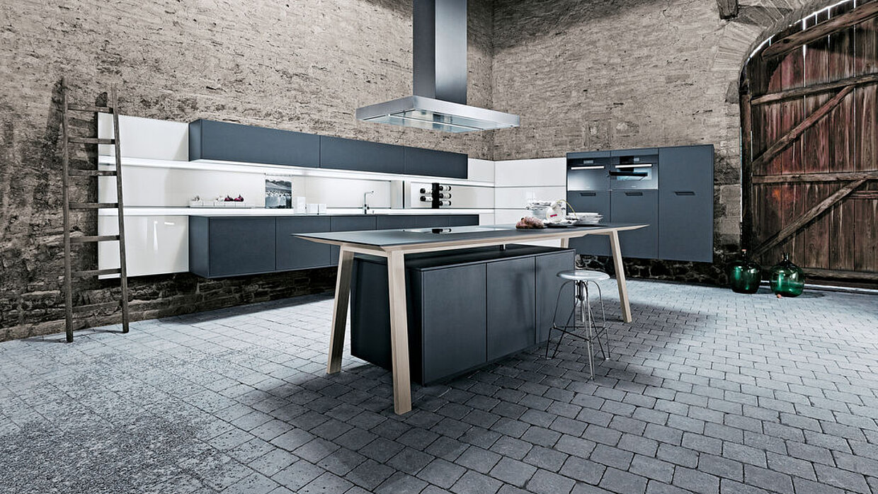 Das Küchensystem next125 wandhängend eröffnet neue Gestaltungshorizonte: Schwebende, wandmontierte Elemente und satiniertes Glas prägen das Gesamtbild dieser next125 Küche. Die Leichtigkeit der Küchenarchitektur und die Ausgewogenheit der Fronten harmonieren in einem homogenen Ganzen. Aufgebaut auf einem strengen 125er Raster, verfolgt das Gestaltungskonzept das Ziel, dem Lebensraum Küche mehr Freiräume und einen Eindruck von Schwerelosigkeit zu verleihen.