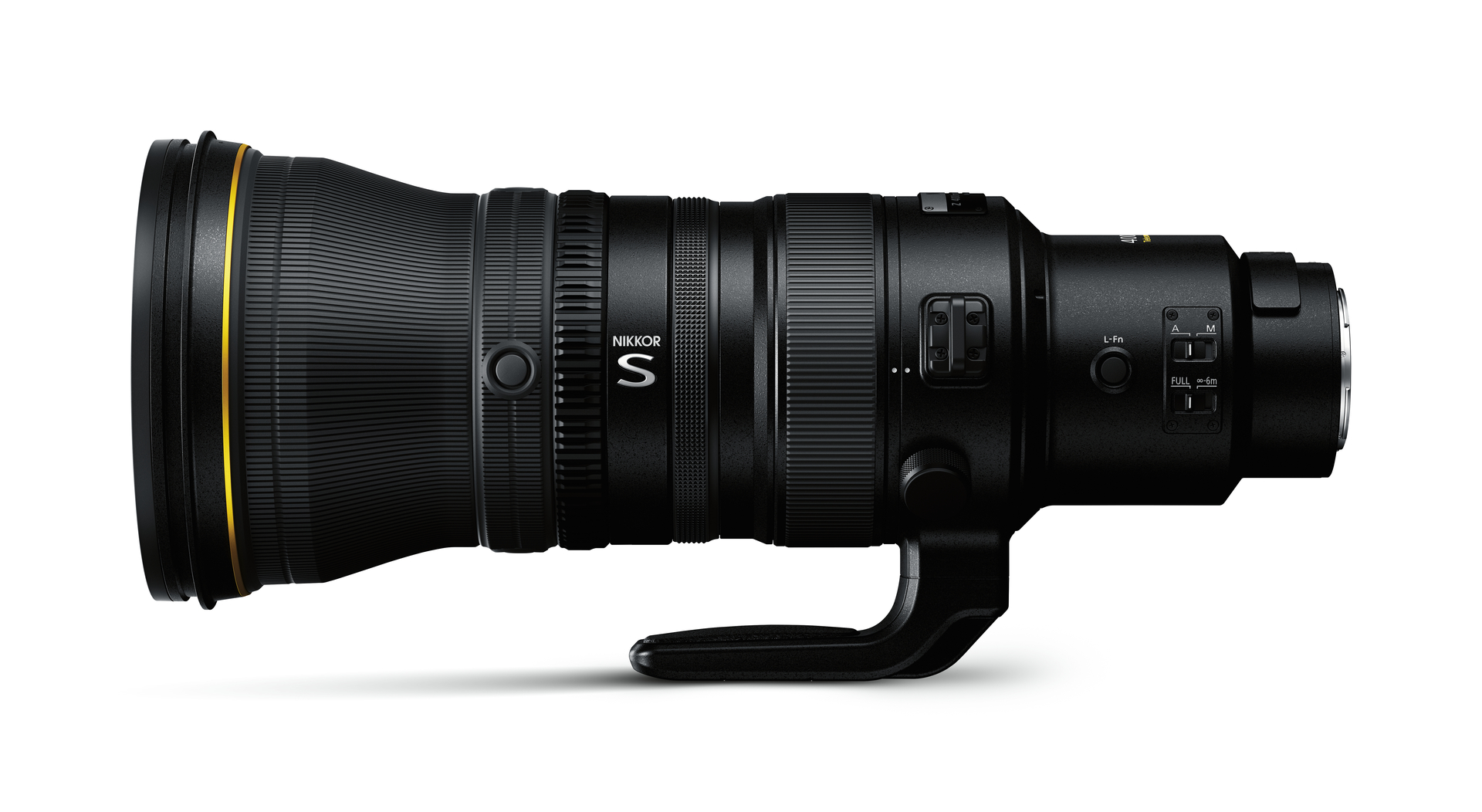 Das NIKKOR Z 400mm f/2.8 TC VR S ist ein lichtstarkes Superteleobjektiv mit integriertem 1,4-fach-Telekonverter. Die kraftvolle Objektivform basiert auf der Montagevorrichtung mit großem Durchmesser. Eine optimierte Form und Anordnung des Telekonverterschalters und anderer Bedienelemente ermöglichen eine blinde Bedienung mit der rechten Hand. Ein gelber Ring am Objektivrand und ein dreidimensionales, metallisches Typenschild identifizieren das Objektiv als Teil der neuen Supertelephoto-Serie.