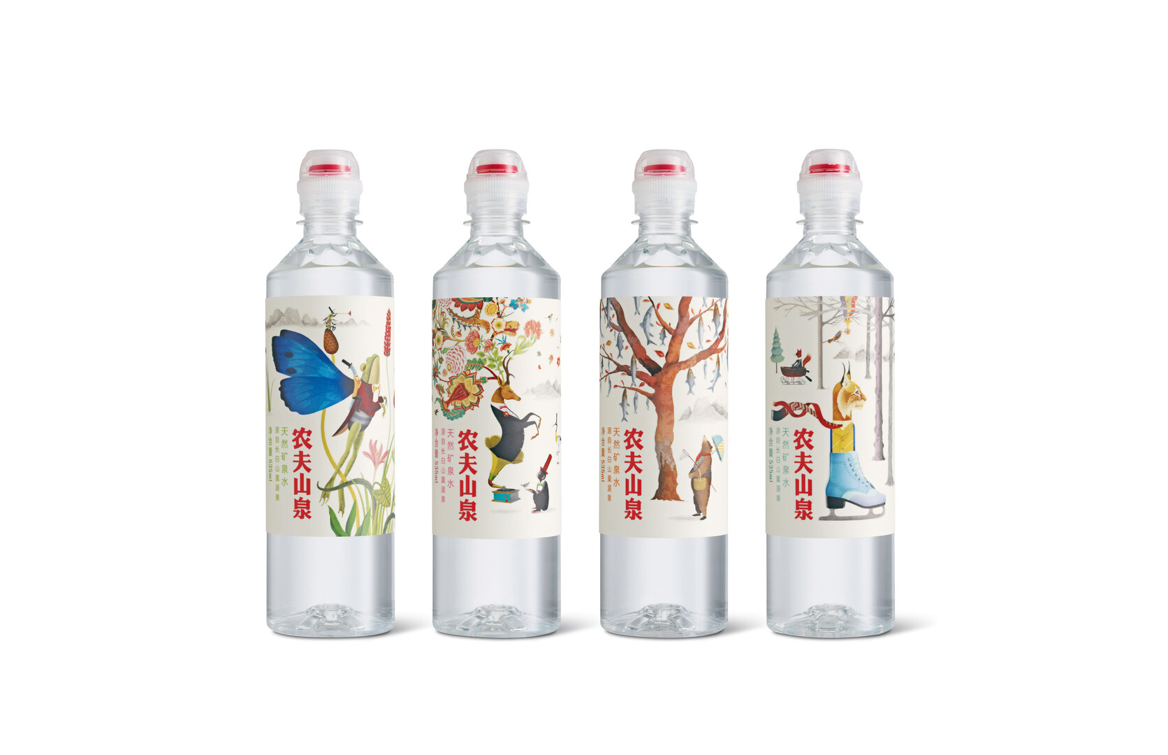 This new mineral water from Nongfu Spring with its leak-free cap targets the youth market. Even when the cap is open, water cannot leak out if the bottle falls over. Thanks to the slim silhouette of the bottle, teenagers can use it with one hand. The imaginative, unique label design conveys a sense of the natural world of the water source. A set of inspiring illustrations were commissioned to reflect the four seasons, bringing to life the wild species that inhabit the nature reserve where the mineral water is sourced.