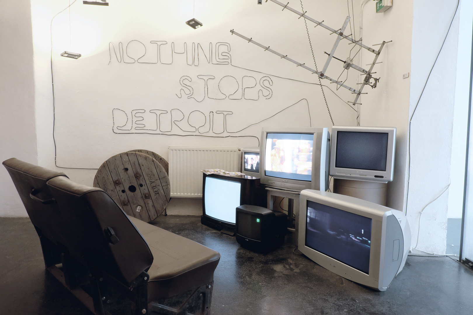 A travelling exhibition aimed at showing how design can be part of urban development, this show focuses on the example of the American city of Detroit. The exhibition first took place within the scope of the design festival Designmonat 2016 in Graz, Austria. Its design concept is based on the idea of reusing material and creating elements that can be integrated at diverse locations. All parts were handmade and inscribed into the exhibition space. The content was adapted for multimedia projections comprising slideshows, videos on tablets, space-filling HD projections, a video installation on old fashioned TV sets and projections on the facade.