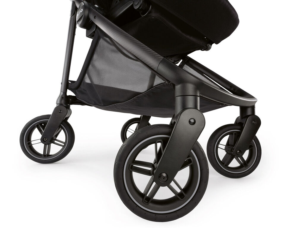 Der Kinderwagen Nuna SWIV wurde für den urbanen Alltag entwickelt. Per Knopfdruck am Griff lassen sich die vier um 360 Grad schwenkbaren Räder entriegeln, was eine Navigation in alle Richtungen erlaubt, also auch das Seitwärtsfahren – hilfreich für enge Gänge, Aufzüge oder den öffentlichen Verkehr. Wird der Knopf losgelassen, arretieren die Hinterräder automatisch und der Wagen kehrt in den klassischen Fahrmodus zurück. Der carbonfaserverstärkte Aluminiumrahmen sorgt für hohe Widerstandsfähigkeit bei geringem Gewicht.
