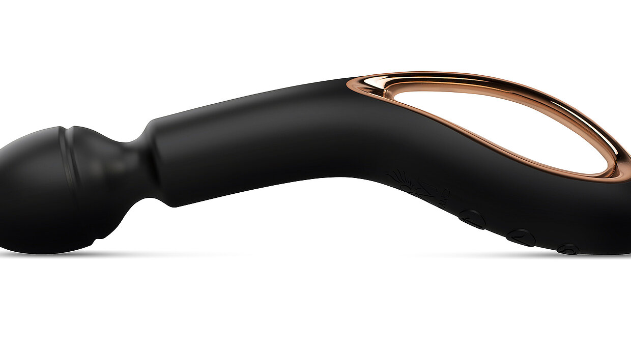 Ein wichtiges Anliegen bei der Konzeption des Vibrators O-Wand war Sicherheit. Das Massagegerät ist aus qualitativ hochwertigem medizinischen Silikon hergestellt, vollständig CE-zertifiziert und verfügt über eine automatische Abschaltfunktion, die das Gerät vor Überhitzung schützt. Der Stab aus schwarzem, weichen Silikon wird mit einem roségoldenen Griff kombiniert. Die Leistungsstufen des kabellosen und wasserfesten Vibrators sind über drei dezent integrierte Tasten zu steuern. Unterschiedliche Aufsätze erweitern und variieren die Anwendung.