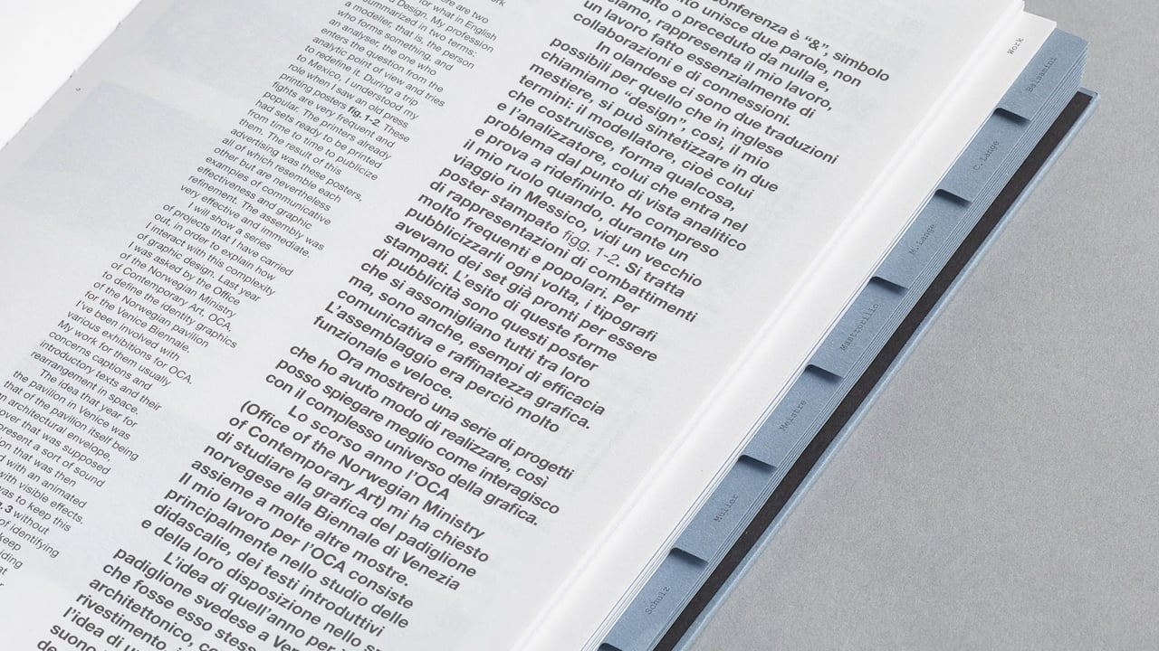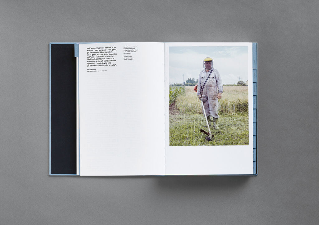 The catalogue showcases the results of the first workshop for artists in residence organised by the Osservatorio Mobile Nord Est (OMNE). It presents ten projects and ten visions located between memory and contemporaneity, analysing the complexity of the landscape of the north-east of Italy through a common theme of “work”. The work is understood as the foundation of the social pact that keeps a community united on the one hand, and as an element that configures a landscape to give it its identity on the other. Inspired by the theme of investigation, the catalogue is reminiscent of a typical archival collector at first glance, transforming that structure into a new interpretation though. The inside features different page formats and types of paper in order to visualise the passage from critical texts and contributions by teachers to the projects of internationally renowned artists, presenting them in the classic form of rubricated files.