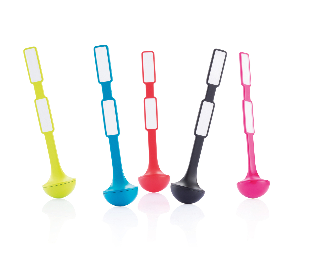 Die Lesebrille aus Kunststoff überrascht durch einen einseitigen Griff mit halbkugelförmigem Abschluss. Er bewirkt, dass sich die Brille wie eine Stehauffigur immer wieder von selbst auf der Unterlage aufrichtet. Das Modell misst 17 8 3,8 cm und ist in mehreren auffälligen Farben erhältlich. Opto lässt sich wie ein Accessoire mitnehmen und hilft z. B. im Restaurant, in der Bank oder im Hotel, Kleingedrucktes zu entziffern.