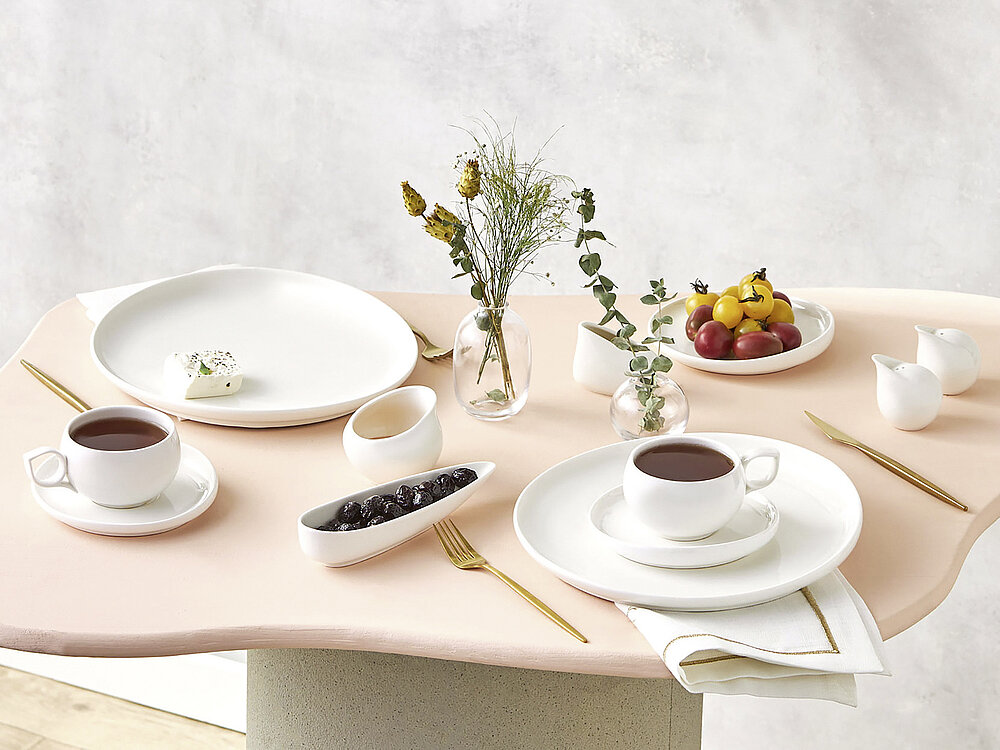 Das umfangreiche Frühstücksset Orbit überrascht mit einer innovativen Formgebung, die eine dynamische Anmutung erzeugt. Die konsequente Anwendung auf alle Serviceteile gefällt sehr gut.