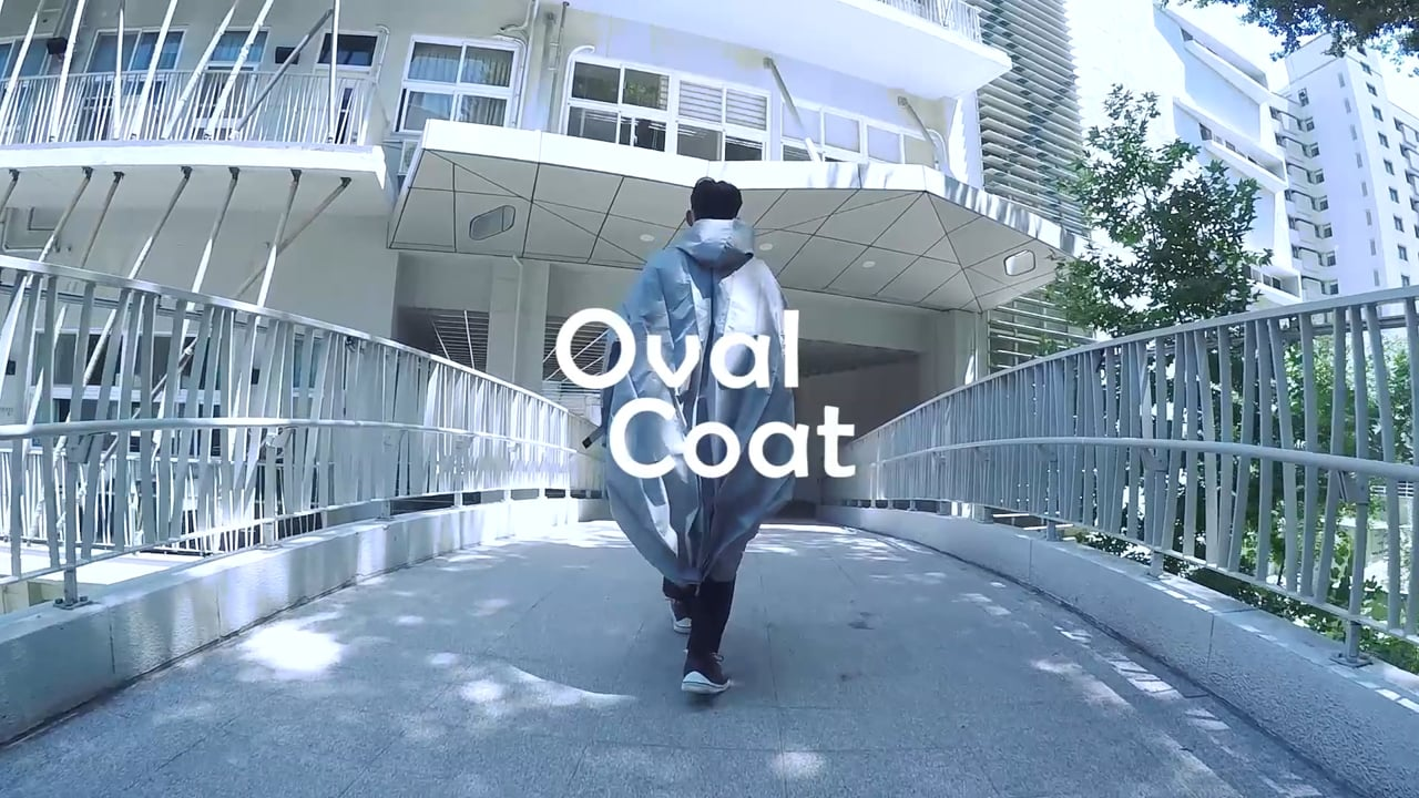 Oval Coat is an origami structure-based raincoat that allows the user to neatly fold the soaked raincoat in less than ten seconds with a gentle shake. The origami structure allows the raincoat to fold down 60% more compactly than standard raincoats. The origami fold lines also allow the design to control how and where the raindrops are expelled, redirecting the flow of water from the neck and chest towards the back, away from the shoes.