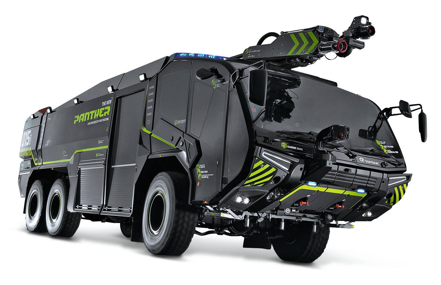 Das Flughafenlöschfahrzeug Panther 6×6 hat ein klar strukturiertes, kompaktes Cockpit, dessen Ergonomie an höchste Einsatzanforderungen angepasst wurde. Die Löschtechnik wird über ein Zentraldisplay gesteuert, die Werfer über hintergrundbeleuchtete Steuergriffe. Das Kabinendesign hat die Anmutung einer Helikopterkanzel und gewährleistet beste Rundumsicht. Die klare, geradlinige Formensprache des Exterieurs drückt Kraft und Schnelligkeit aus und ist zugleich funktional und kosteneffizient.