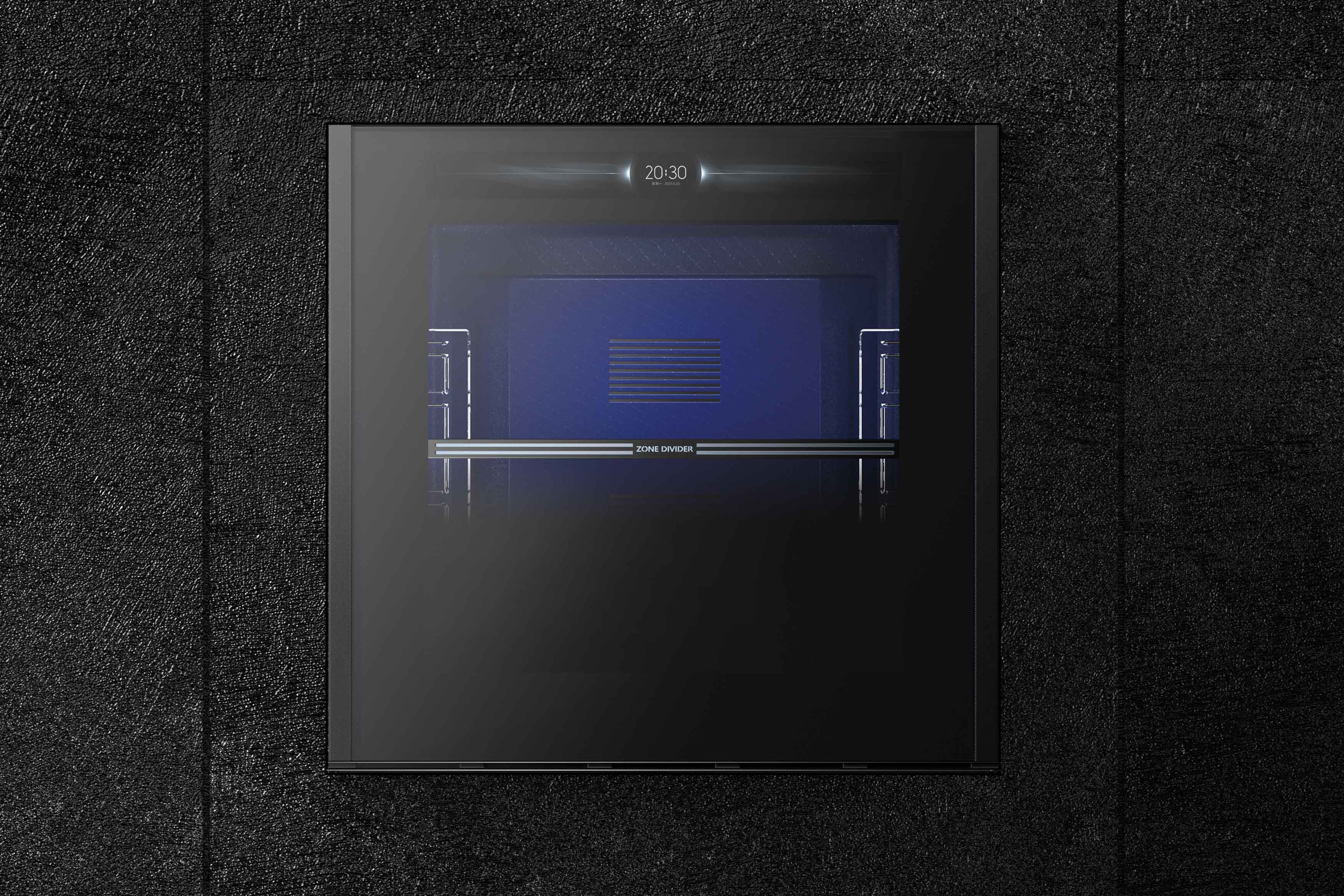 This wall oven blends seamlessly with kitchen cabinetry, only becoming visible when approached or in use. Using electrochromic technology, the glass turns transparent when its sensors detect nearby users. While setting cooking parameters, the glass also becomes transparent in the corresponding area, ensuring correct food placement. Its flexible zone partition enables quick, dual cooking to reduce time and energy consumption.Red Dot Award: Design Concept | Concept | Kitchen Appliances and Accessories