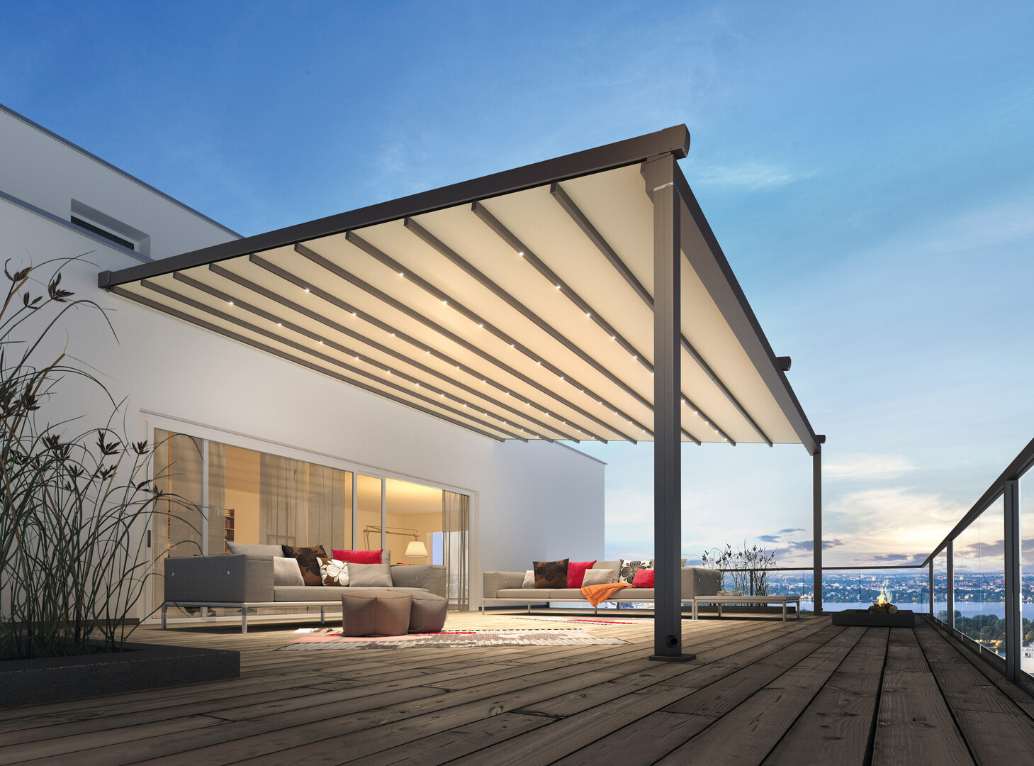 Die Pergola-Markise PergoTex II entwirft ein neues Szenario für ein entspanntes Genießen im Freien. Mit ihrem stabil gestalteten Rahmen und zuverlässigen Faltmechanismus ermöglicht sie dies auch dann, wenn das Wetter nicht mitspielt. Als gelungene formale Einheit aus Pergola und Markise zeigt sie eine stilvolle Ästhetik und eine bestechende Funktionalität. Sie lässt keinen Regen durch, ist langlebig, schmutzabweisend und windstabil.