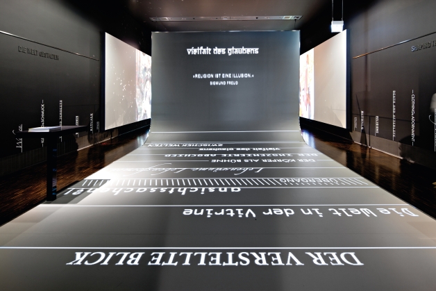 A scenographic course, spread over three floors and 3,600 sqm of exhibition space, was developed for the Rautenstrauch-Joest-Museum. The intention was to create rooms filled with intensity and magic, enabling an intuitive access to multifaceted and complex ethnological topics. The innovative exhibition concept foregoes the usual geographical classification but instead focuses on issues which are handled and approached differently in different cultural groups. The authentic object with its specific aura stands in the centre of these arrangements.