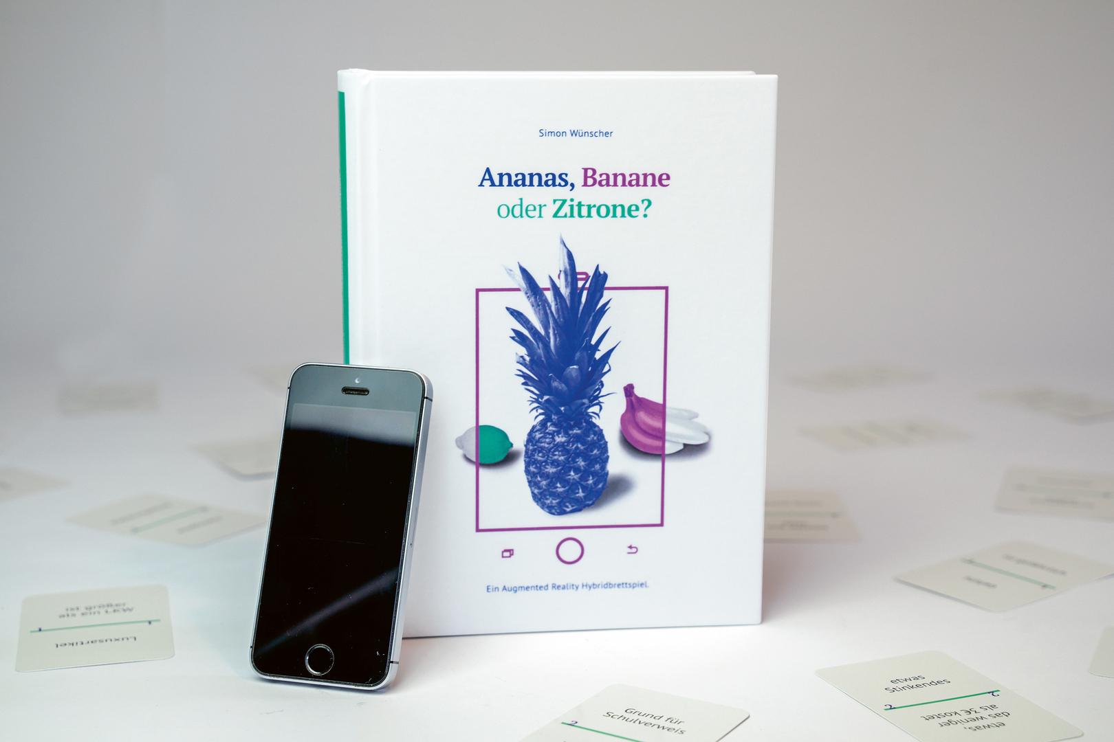 “Pineapple, banana or lemon?” is a cooperative game for four players. For its development, the existing literature on games and play was examined, and hybrid games on the market were tested, compared and observed in respect to their digital and analogue components. Finally, rapid prototypes were used to gain insight into various areas of hybrid games. The information was then used to build an iteratively designed game prototype and expand it with an augmented reality smartphone application, making it emerge as an exciting type of hybrid game.
