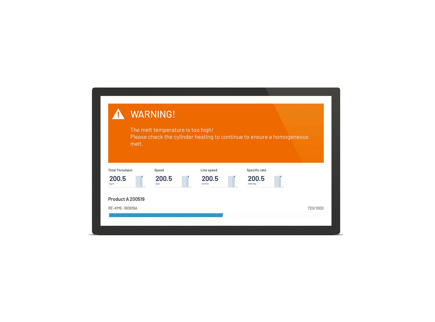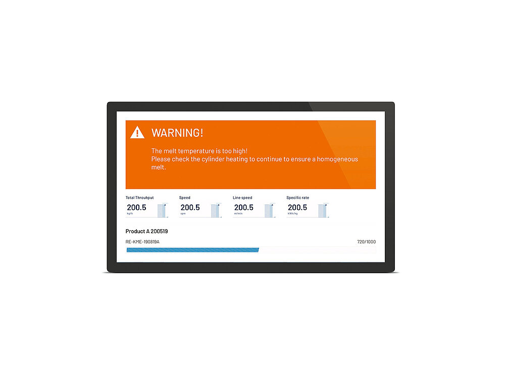 This user interface is designed for industrial machines used in the extrusion and recycling of plastic and rubber products. It is used for process monitoring and machine operation, with a focus on presenting the most important figures and notifications from the system. Interactive displays, favourite pages and workflows help users to understand and manage complex processes. The design of the user interface is clearly structured, functional and responsive, allowing it to be used on various monitor sizes and smart devices. It reflects key aspects of the corporate design and contributes to a consistent brand image.