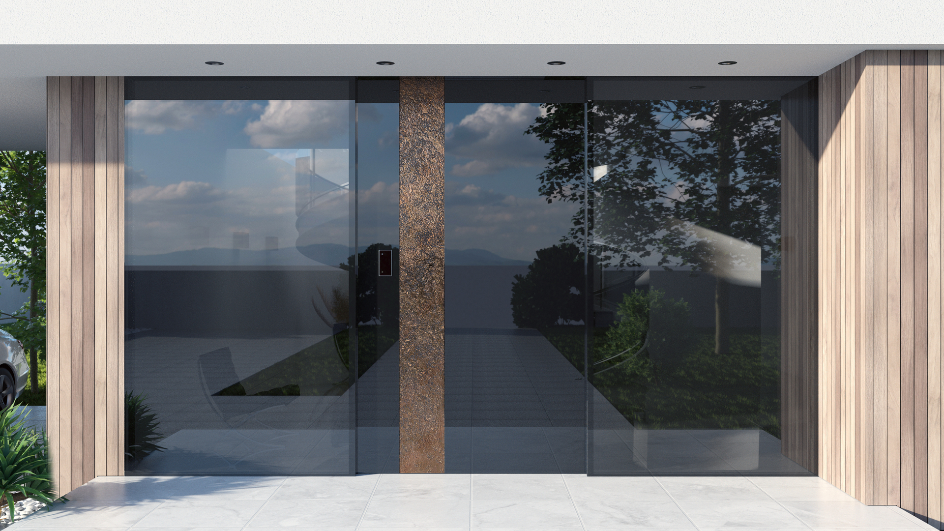 Die patentierte Eingangstür Pirnar Theatrica öffnet sich automatisch ohne Berührung. Es reicht aus, sie nur anzusehen. Das integrierte Gesichtserkennungssystem erkennt den Besitzer, öffnet anschließend sanft die massive Tür und schließt sie hinterher von selbst. Neben der einfachen Variante ist auch eine zweiflügelige Ausführung erhältlich, die den Eindruck einer sich öffnenden Wand erweckt. Die Tür, die keinen Griff benötigt, kann beliebig aus Holz, Stein, Glas oder Aluminium gefertigt werden. Ihr Einbau ist unkompliziert und einfach.