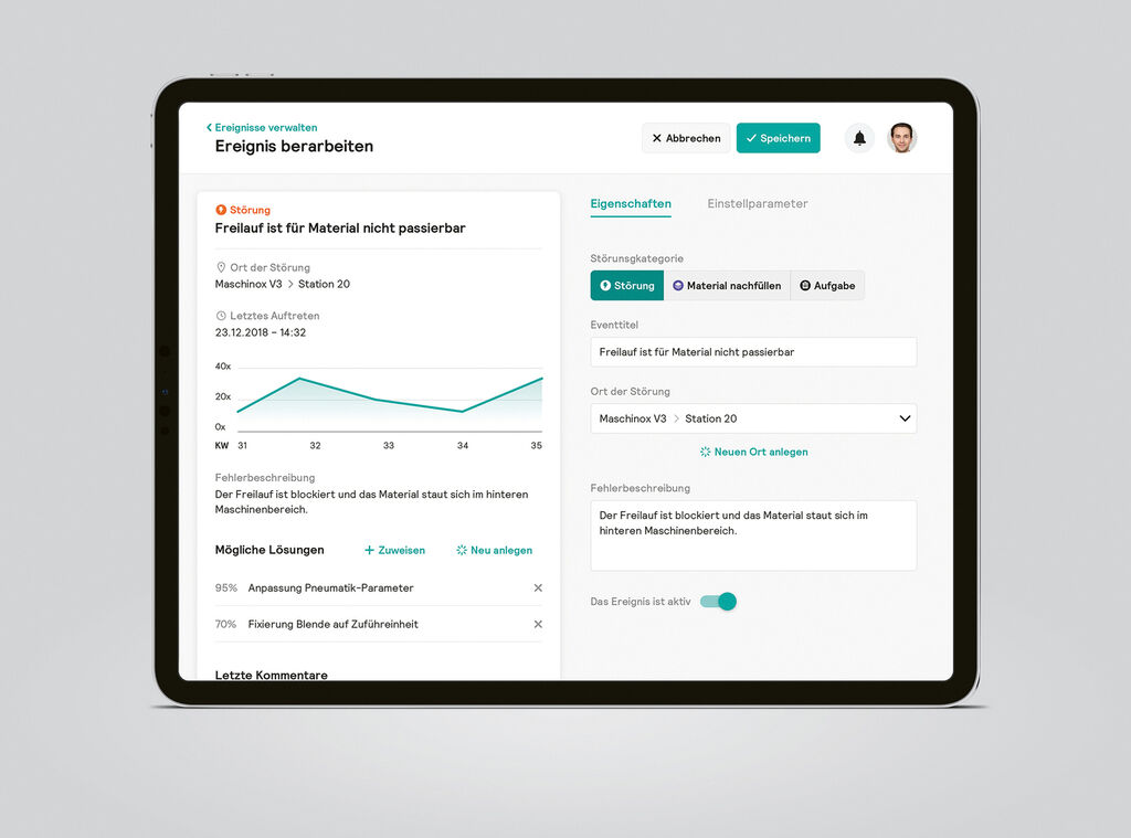 In order to enable workers in a factory to make autonomous and proactive deci-Sions, thus facilitating more efficient production, this multi-device user interface has been structured for optimal problem solutions. By analysing all data streams, real-time data about the production process is collected and analysed, categorised and prioritised, using machine learning. The use of mobile devices and stationary terminals enables the workers to detect malfunctions and problems, to communicate them or to act directly based on suggested solutions.