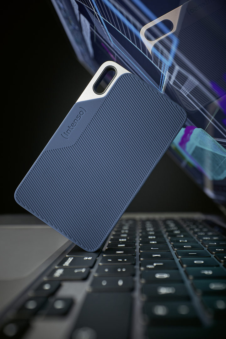 Portable SSD TX100 überzeugt mit kompakten Maßen, hoher Leistung und funktionaler Oberflächenstruktur als durchdachte Speicherlösung.