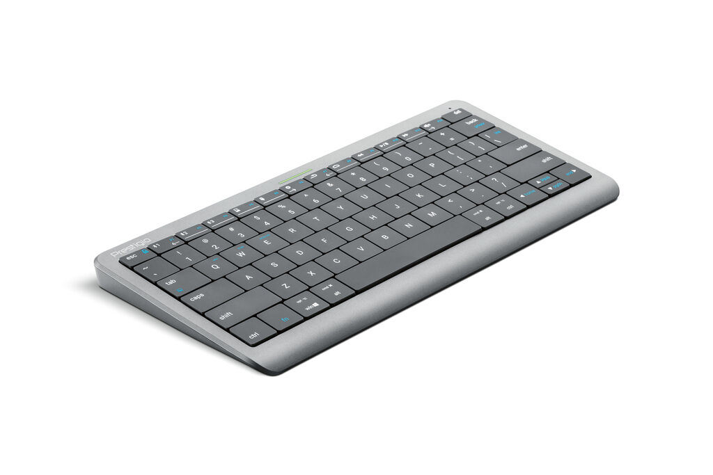 Click&Touch ist eine interaktive Tastatur, deren Tasten mit Touchpad-Funktionalität ausgestattet sind, die auf der TouchOnKeys-Technologie basiert. Sie kann klassisch wie eine Tastatur verwendet werden und darüber hinaus wie ein Touchpad oder eine Maus. Bis zu fünf Geräte lassen sich gleichzeitig mit dem System verbinden, die dann mit Gesten, Cursor, Klicken oder Scrollen gesteuert werden können. Das Umschalten zwischen Tastatur- und Touchpad-Modus geschieht automatisch, sodass der Benutzer nahtlos zwischen den verschiedenen Modi wechseln kann.