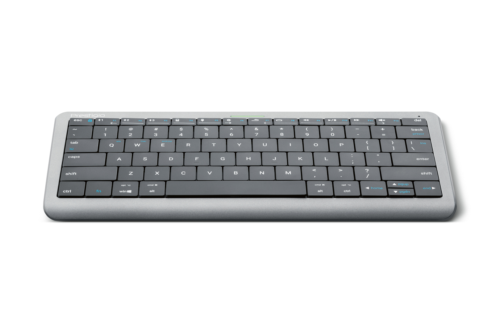 Click&Touch ist ein interaktives Tastatursystem, dessen Tasten mit Touchpad-Funktionalität ausgestattet sind, die auf der TouchOnKeys-Technologie basiert. Wenn der Benutzer es berührt, kann er Geräte mit Gesten steuern, klicken, scrollen und bis zu fünf Geräte über drei Verbindungskanäle bedienen. Eine spezielle Software ist dafür nicht nötig. Äußerlich unterscheidet sich Prestigio Click&Touch nicht von einer herkömmlichen Tastatur und ist daher für den Einsatz am Schreibtisch in Verbindung mit einem Computer bestens geeignet.