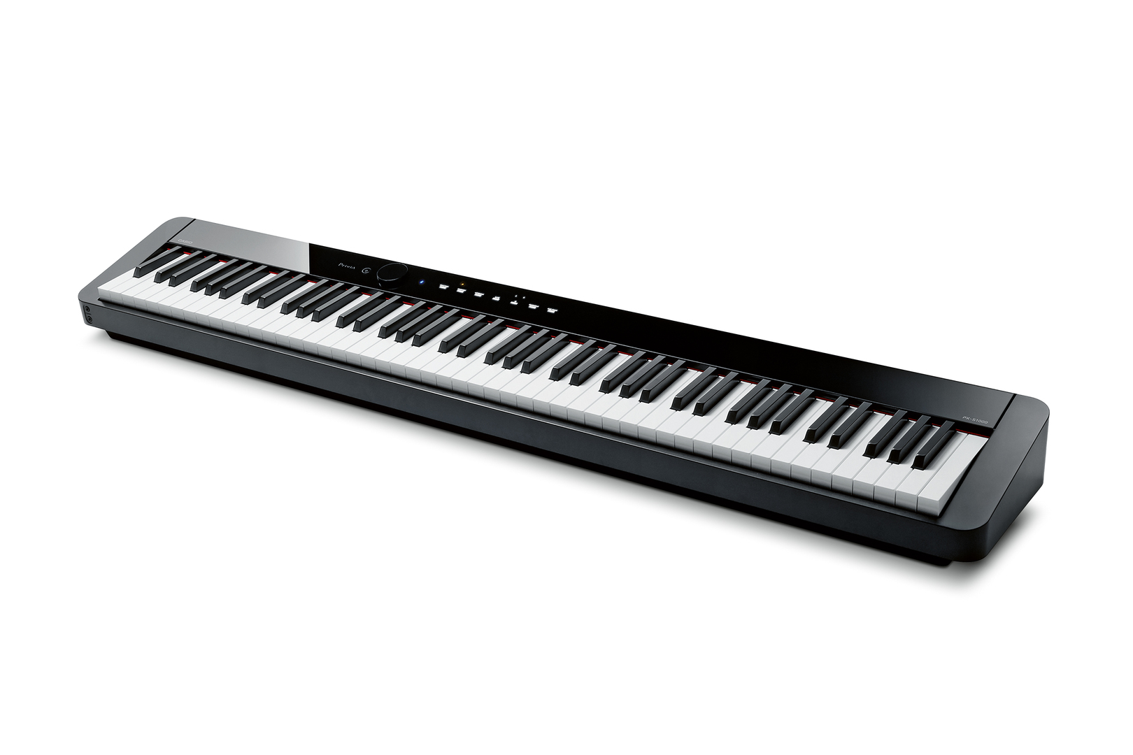 Privia PX-S1000 ist eine vollständige Tastatur, die in ein kompaktes Digitalpiano integriert ist. Die Besonderheit des neu entwickelten Tastenfelds mit Hammermechanik ist die kleine, schlanke Form. Dank des Spiegel-Touchpanels auf der Konsole konnte auf die vielen sonst üblichen Knöpfe verzichtet werden, sodass sich der Musiker ganz dem Spielen widmen kann. Dank seiner kompakten Bauweise lässt sich das Klavier, in dessen Gehäuse Akku und Lautsprecher untergebracht sind, problemlos überallhin mitnehmen. Die Bluetooth-Konnektivität ermöglicht zudem die Verwendung als Heim-Audiogerät für ein erweitertes Klavierprogramm.