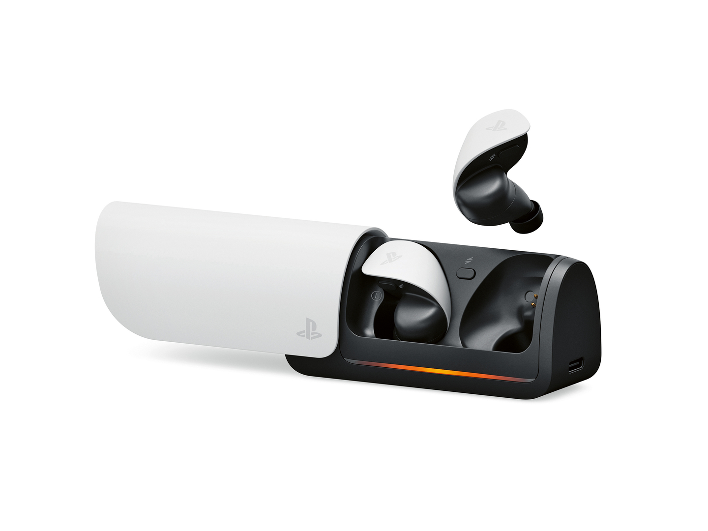 Markant und dynamisch in der Form, fügt sich PULSE Explore harmonisch in die PS5-Welt ein. Das Ladecase unterstreicht die ästhetische Kohärenz.