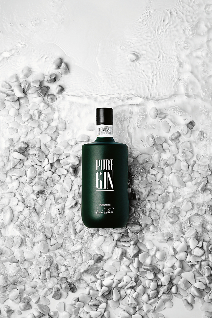 With an honest, ostentatiously restrained design, this packaging is intended to give a foretaste of the pure quality of the gin from the Hubertus Vallendar distillery. The bottle itself is deliberately kept simple and features the classic colour of deep-dark matt green glass, which changes noticeably depending on the incidence of light. The logo in a muted white colour scheme features in an eye-catching position on the front, while the information about the Pure Gin can be found on the back of the bottle in a concise yet descriptive text.
