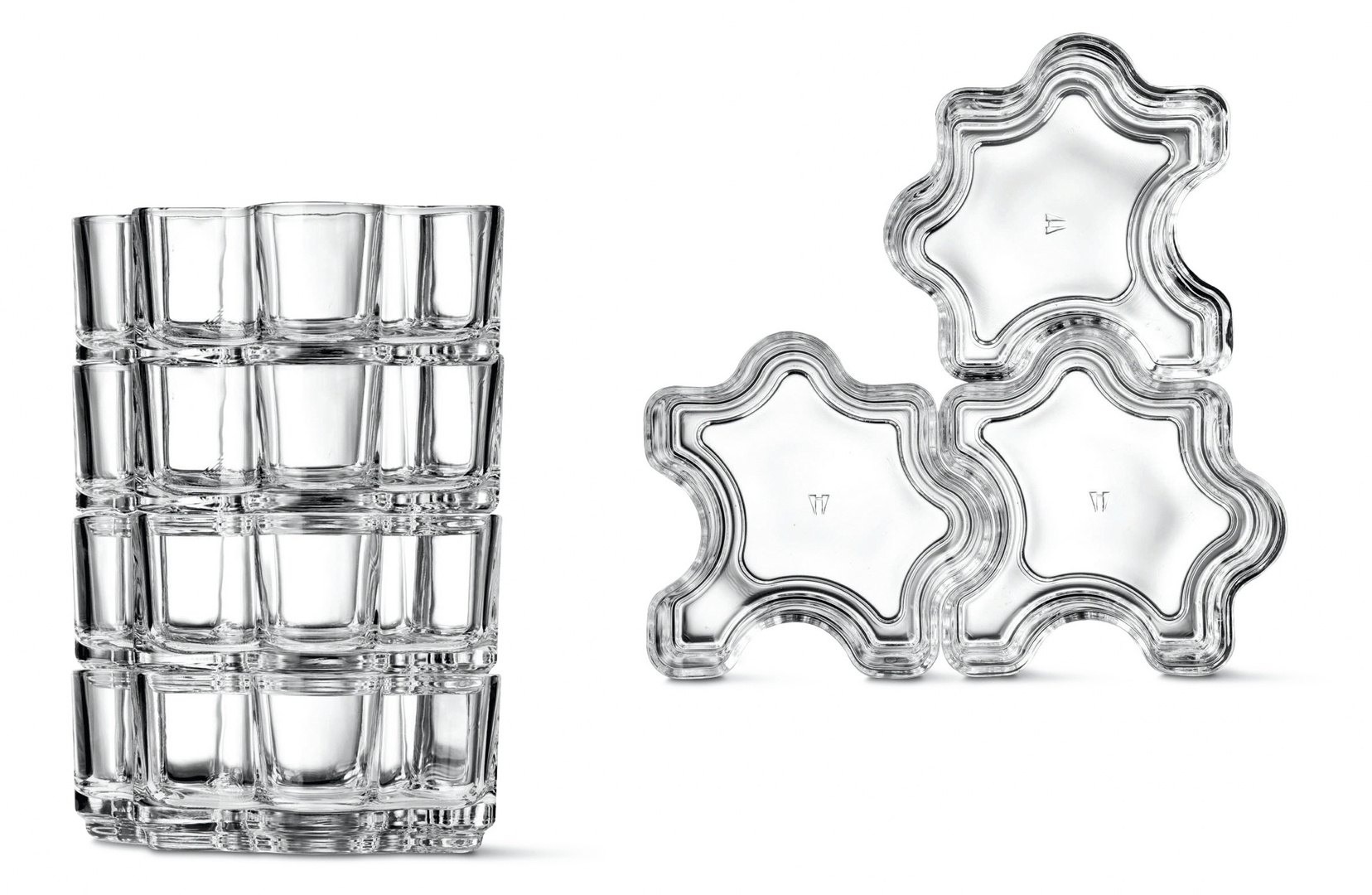 Wie ein Puzzle lassen sich die gleichnamigen Schalen zusammenstecken. Dank ihrer Modularität können sie in jeder beliebigen Richtung zusammengesetzt werden. Im Schrank nehmen die stapelbaren Glasschalen nur wenig Platz ein und bieten viele Gebrauchsmöglichkeiten. Sie werden aus reinem Glas in Slowenien hergestellt. Das stabile Glas kann bis zu 3.000 Mal in der Spülmaschine gespült werden, ohne dass sichtbare Spuren zurückbleiben. Darüber hinaus ist Puzzle mikrowellengeeignet und enthält keine Schwermetalle.