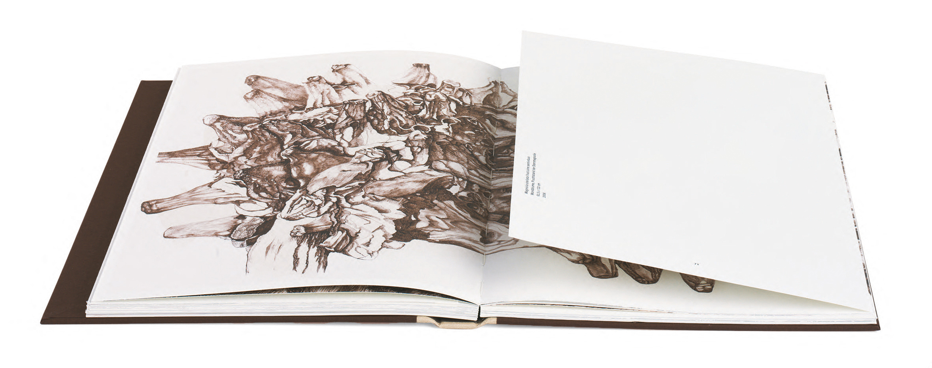 This art book compiles the works of artist Rainer Wolf created over a period of more than 30 years, featuring fascinating and meticulously crafted drawings of motifs from nature. The challenge in designing the book lay in the extreme vertical and horizontal formats of Wolf’s works and their accurate rendering on rough natural paper. Since all of the works are displayed as spreads, a binding called Swiss brochure was chosen for the book. The emblem embossed on the front cover comes in 16 variations.
