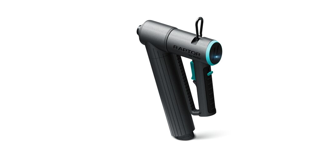 RAPTOR Handy ist eine Heißklebepistole, die in ergonomischer und ästhetischer Hinsicht zeitgemäß gestaltet ist. Dabei wird sie hohen technischen Anforderungen gerecht und kann drahtlos mit dem Internet of Things verbunden werden. Der Klebstoff wird mit einem Schlauch zugeführt. Um Flexibilität zu gewährleisten, gibt es das Gerät in zwei Versionen, die sich darin unterscheiden, dass der Kleber einmal von oben und einmal von unten zugeführt wird. Die zylindrische Formgebung stellt eine Verlängerung des Pumpschlauchs dar und vereinfacht so den Auftrag des Klebstoffes. Durch eine integrierte Aufhängelösung wird die Last des Schlauches verringert.