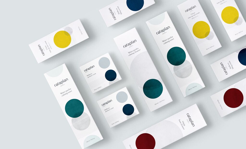 Rataplan is a Korean beauty and skincare brand dedicated to the principle of clean beauty, i.e., avoidance of certain ingredients. The brand’s visual identity is based on circular shapes and overlapping straight lines, inspired by the door grills of traditional Korean buildings. These elements feature on all communication materials in the brand colours water parsley, mulberry, omija (magnolia berry), citrus as well as cool grey and white, creating a unified, reduced look.