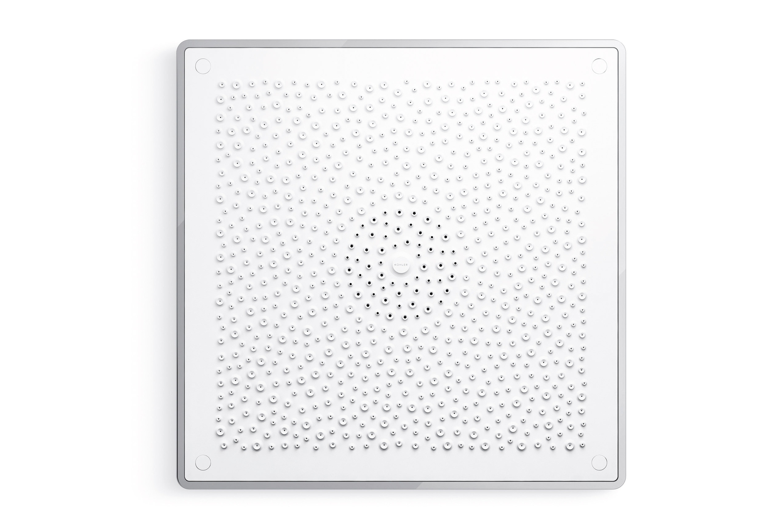 Die patentierte Düsengeometrie der Kopfbrause Real Rain erlaubt einen Wasserfluss in Tropfenform. Die Sprayoberfläche besteht aus zahlreichen scheinbar willkürlich platzierten Düsen. Sie imitieren einen natürlichen Regenschauer und bilden 775 einzelne Tropfen, die nicht durch Druck, sondern durch die Nutzung der Schwerkraft unterschiedlich schnell und keinem besonderen Muster folgend fallen. Dank der Deluge-Funktion kann parallel zum regulären Gebrauch Wasser gesammelt und auf Knopfdruck flutartig entleert werden, was einen acht Sekunden langen Platzregen simuliert. Ein eingebautes Wasserreservoir macht Real Rain mit einem Verbrauch von 7,6 Litern pro Minute zudem effizient.