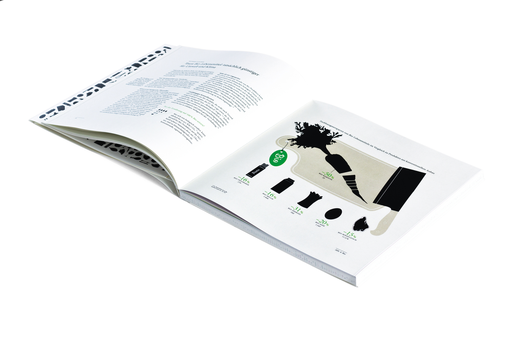 Our consumer behaviour and dietary habits correlate to multifaceted environmental pollution and enormous greenhouse gas emissions. With the aim of raising awareness of the negative impact of today’s diet on the environment and the climate, and showing that everybody can make a relevant contribution by taking targeted measures with regard to shopping and cooking, this book highlights the complex issue of diet, consumption and climate protection. Coming in an eye-catching large-size square format and featuring a clear typeface, distinctively visualised infographics and a unique picture language, this substantial publication reveals potential measures for reducing greenhouse gas emissions related to diet without giving an educational or frightening impression. A varied and seasonal recipe collection for the entire year literally spices up the content, suggesting in a visually distinctive and appealing manner that a balance between culinary pleasure and climate protection can be achieved through our choices. Statement by the jury »This comprehensive, clearly laid-out book is both a cookbook and a kind of life guide on how to follow a diet that is environmentally friendly. Alongside well-grounded facts and information, for instance on how many resources are consumed for the production of certain foodstuffs, the design represents a solution that is outstanding and highly convincing by means of visually appealing and easy-to-understand infographics.«