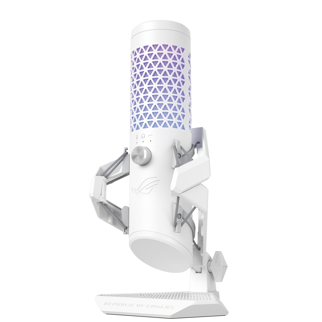 Das Mikrofon ROG Carnyx ist für Livestreaming und In-Game-Kommunikation konzipiert. Es verfügt über eine 25-mm-Kondensatorkapsel in Studioqualität, die feine Klangnuancen erfasst und für ein warmes Klangbild sorgt, einen Hochpassfilter und einen eingebauten Pop-Filter. Bei den Materialien spielt Metall, das etwa für die Schockhalterung zum Einsatz kommt, eine wesentliche Rolle. Elastische Aufhängungskabel absorbieren Desktop-Vibrationen. Eine Besonderheit ist die RGB-Beleuchtung mit anpassbaren Effekten.