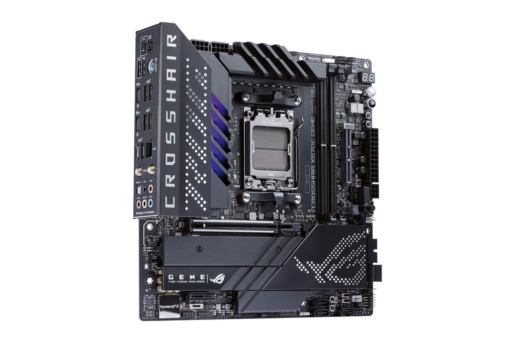 Laut Wertung der Jury beeindruckt das microATX-Motherboard ROG Crosshair X670E Gene „mit einer fortschrittlichen Ausstattung und visuell ansprechenden Formensprache“. Es verfügt über einen zurückhaltend gestalteten, tiefschwarzen Kühlkörper, ein eingraviertes ROG-Logo auf der E/A-Abdeckung sowie ein verpixeltes Fearless-Eye-Symbol auf dem Chipsatzkühlkörper. Die RGB-LED-Akzente auf dem VRM-Kühlkörper lassen sich darüber hinaus mit Aura Sync anpassen. Das Motherboard bietet eine breite Palette an Konnektivitätsoptionen und eine 16+2-Stromversorgung, die auf die Anforderungen leistungsfähiger Prozessoren vorbildlich abgestimmt ist.