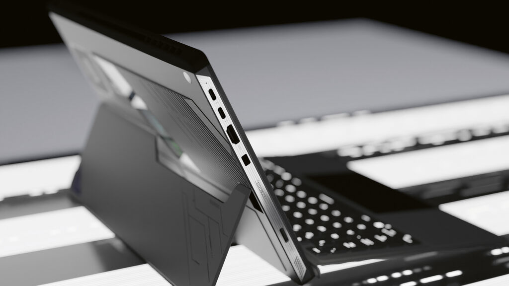 Das ROG Flow Z13 ist ein 2-in-1-Tablet bzw. Laptop mit leistungsstarker Gaming-Hardware für den mobilen Einsatz. Es kombiniert eine hocheffiziente APU mit einem nur 12,96 mm dünnen, CNC-gefrästen Aluminiumgehäuse. Die variable Bauweise ermöglicht fließende Übergänge zwischen Arbeit und Spiel in wechselnden Umgebungen. Entwickelt aus Workshop-Erkenntnissen, erfüllt es die Anforderungen digitaler Nomaden an Vielseitigkeit, Mobilität und Performance.