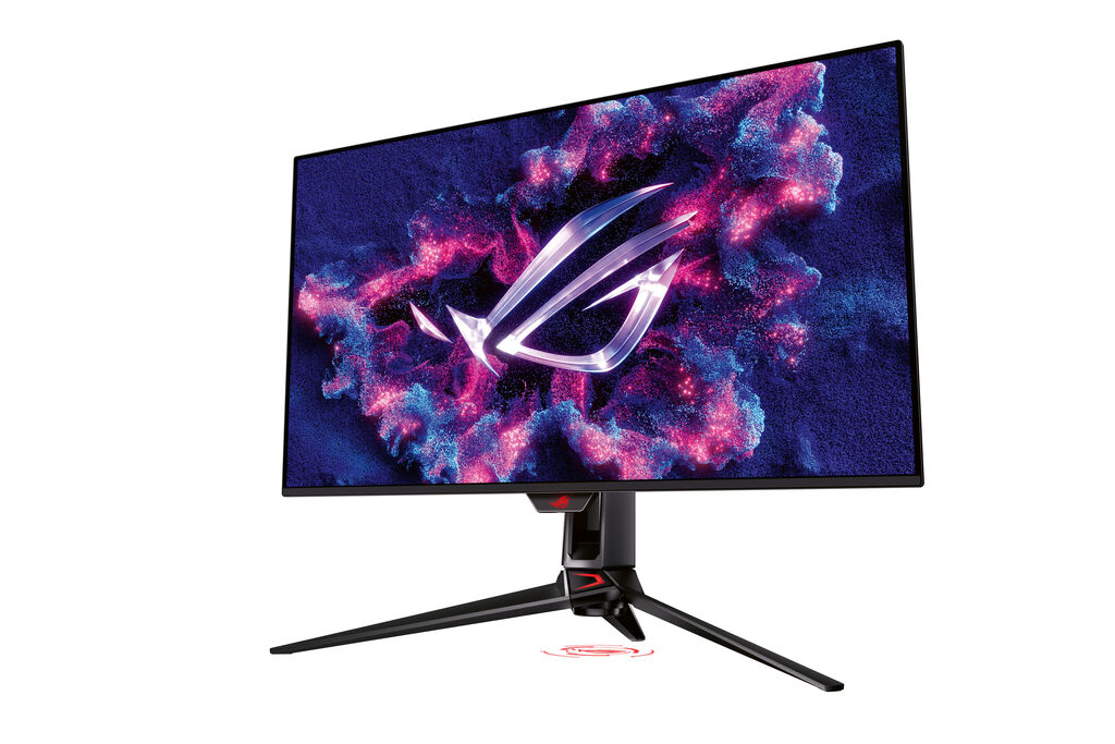 Die Monitor-Serie ROG Swift OLED 27/32 mit 240 Hz Bildwiederholrate bietet 0,03 ms Reaktionszeit für anspruchsvolle Echtzeit-Games. Das flache Gehäuse nutzt seitliche Lüftungsöffnungen und eine spezielle Kühlstruktur zum Schutz des OLED-Displays. Mit USB-C samt 90-W-Power-Delivery, KVM-Umschalter und eigens entwickelter Technologie zur Reduzierung von Bewegungsunschärfe bietet das Modell hohe Funktionalität. Der Standfuß dient zugleich der Projektion von Lichteffekten.