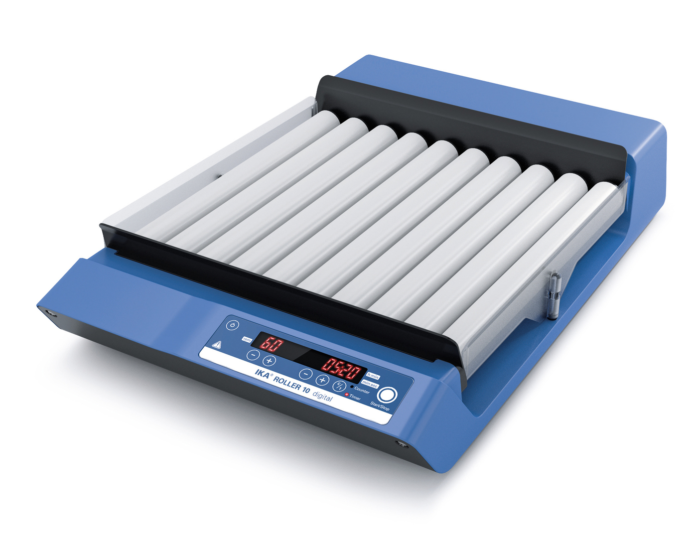 Mit dem Rollenschüttler Roller 10 digital können feste und flüssige Substanzen in Gefäßen und Flaschen mit unterschiedlichen Durchmessern und Größen geschüttelt werden. Die transparenten Seitenschilder, die den Arbeitsbereich umgeben, passen sich stets an die Lage der äußersten Rollen an und verhindern so, dass einzelne Gefäße vom Gerät fallen. Die Schilder sind abnehmbar und können somit schnell und einfach gereinigt werden.