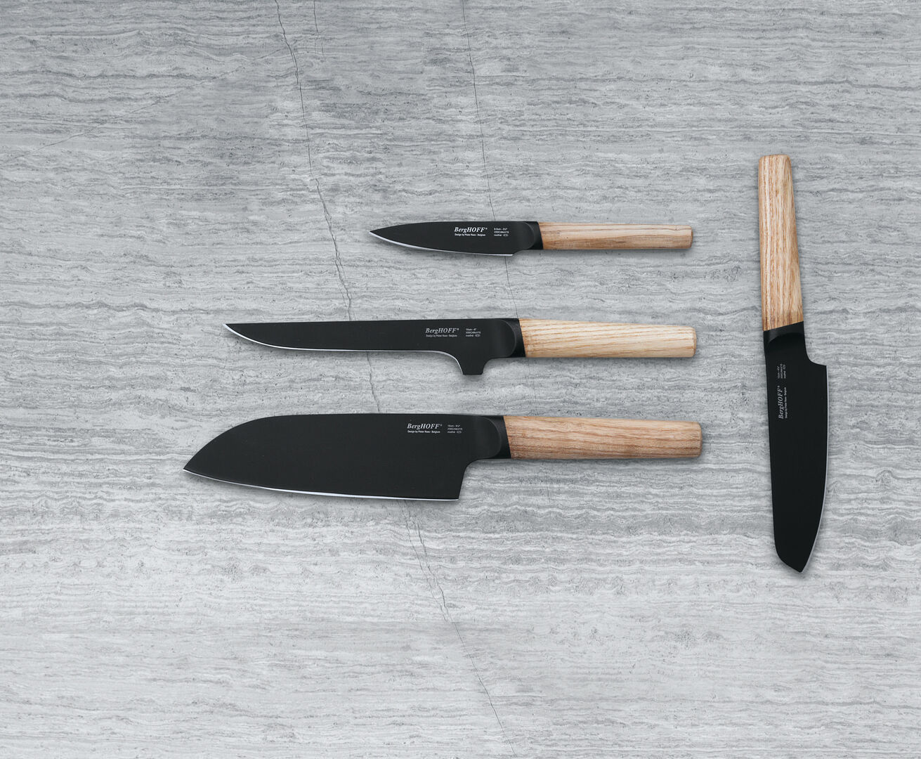 Die Serie Ron besticht durch ihr minimalistisches Design und die durchdachte Funktionalität von Messer und Organizer. Das Essenzielle einer Messerserie kommt hervorragend zum Ausdruck. In der Version mit Eschenholzgriff gehen die Materialien Metall und Holz durch den farblichen Kontrast zudem eine einzigartige Verbindung ein. Die Messerhalter überzeugen durch ihre Zweckmäßigkeit, sie erlauben einen einfachen Zugriff und stehen für eine sichere Aufbewahrung.