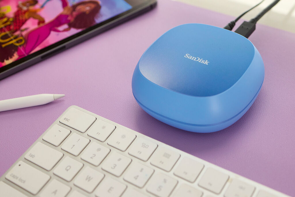 Die SanDisk Creator Series umfasst professionelle Speicherlösungen wie microSD- und SD-Karten, SSDs und Flash-Laufwerke sowie ein USB-C-Flash-Laufwerk mit hoher Leistung für kreative Arbeitsprozesse. Soft-Touch-Oberflächen, eloxiertes Metall und Farbverläufe in Blau und Lila prägen die Gestaltung. Die Serie unterstützt Kreative von der Ideenfindung bis zur Umsetzung mit hochwertigen Materialien und verlässlicher Technik und setzt bewusst farbliche Akzente im Arbeitsumfeld.