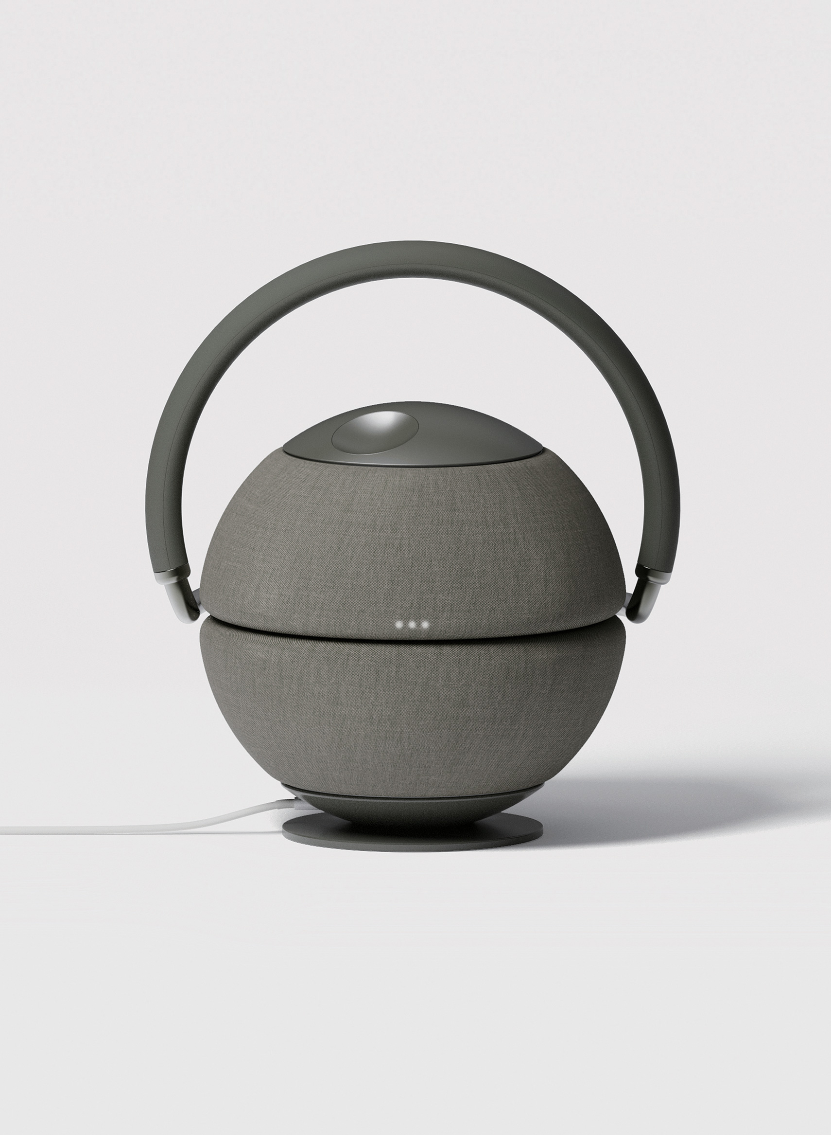 SATELLITE is a versatile sound device that remains valuable in any environment, offering both headphone and speaker listening modes. In headphone mode, ear cups fit snugly for personal listening; in speaker mode, the exterior is covered in fabric to resemble a speaker. Additional features include a headband that doubles as a handle, controls managed via dial buttons, and a charging dock.