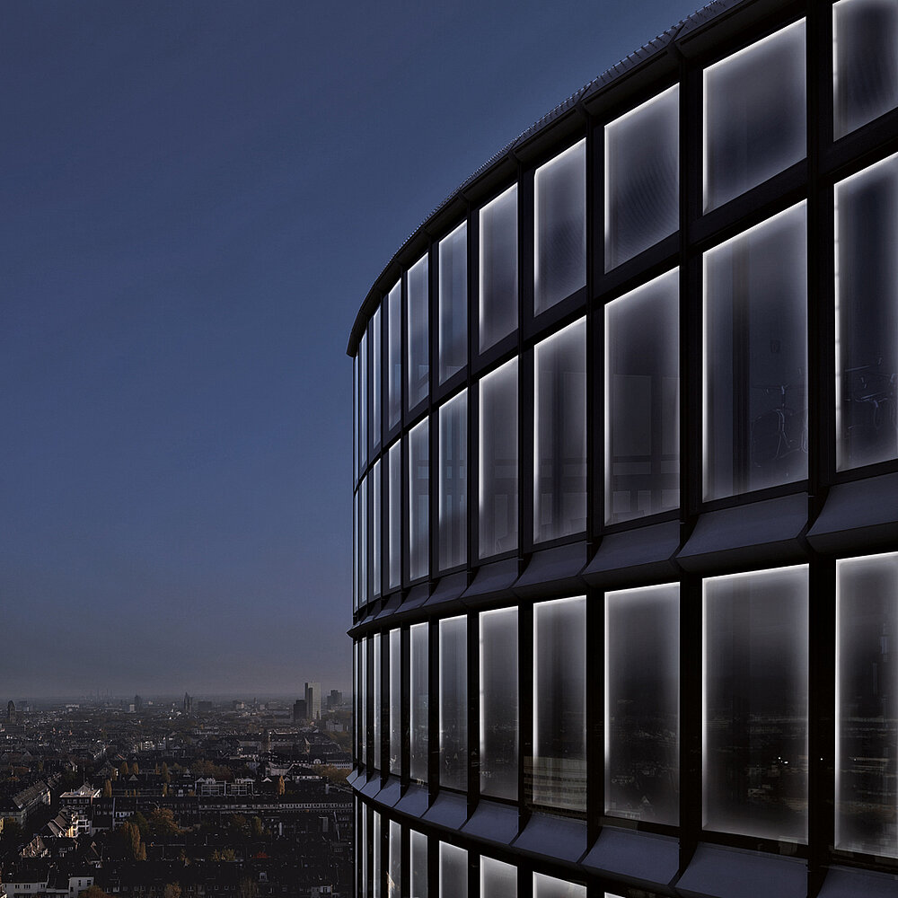 Die innovative LED-Fenster- und Fassadenbeleuchtung Schüco LightSkin gibt architektonischen Formen und Strukturen auch bei Nacht ein markantes Aussehen.