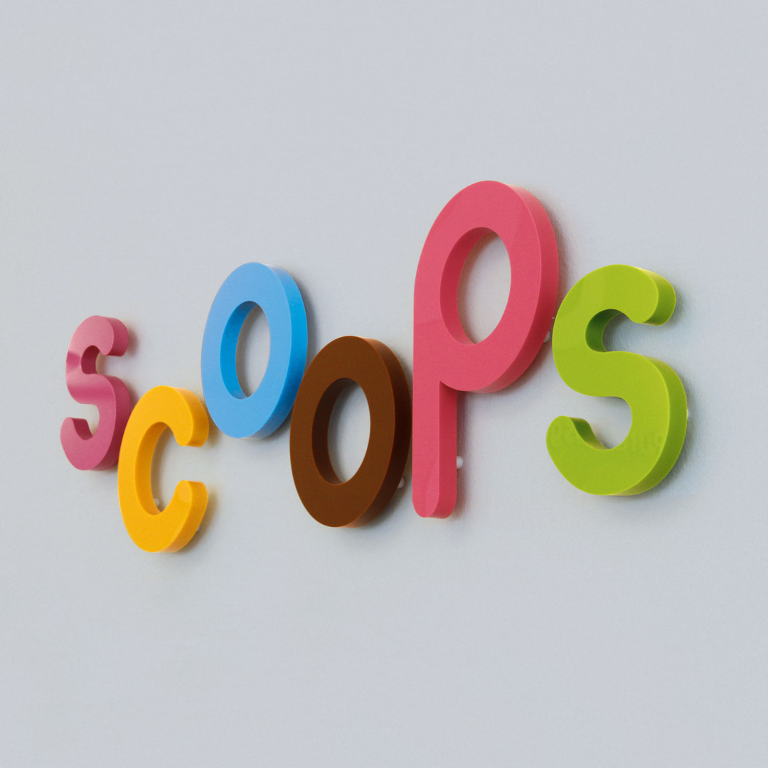 Scoops is an American chain of ice cream shops, at present in Germany at two locations in Aachen. The company offers a special range of unconventional und natural ice cream creations. The rounded shape of the wordmark reflects the link to ice cream: a clear but playful arrangement of the single letters alludes to the form of the ice cream scoops. The bright colours represent the various flavours, while the whole corporate design is emotionally appealing and encourages the desire to buy. Pictograms show the product range and appear on the price board – in the shop windows and on different media such as ice cream cards, postcards and the website.