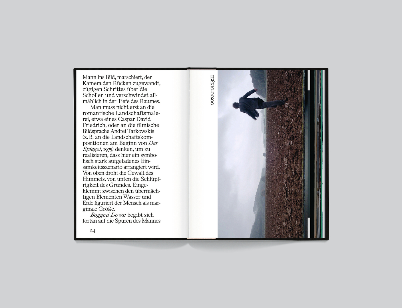 With the intention of making video art accessible to a wide audience, the exhibition “Sehnsucht und Fall” (Longing and Fall) presented films and videos by various artists from Wemhöner’s collection. The accompanying catalogue visualises the stories of burning desire and painful failure shown in the form of a flip book. The supplementary audio descriptions are set like scrolling text in film credits. The linen-bound book is housed in a slipcase with an aesthetic reminiscent of a VHS video cassette.