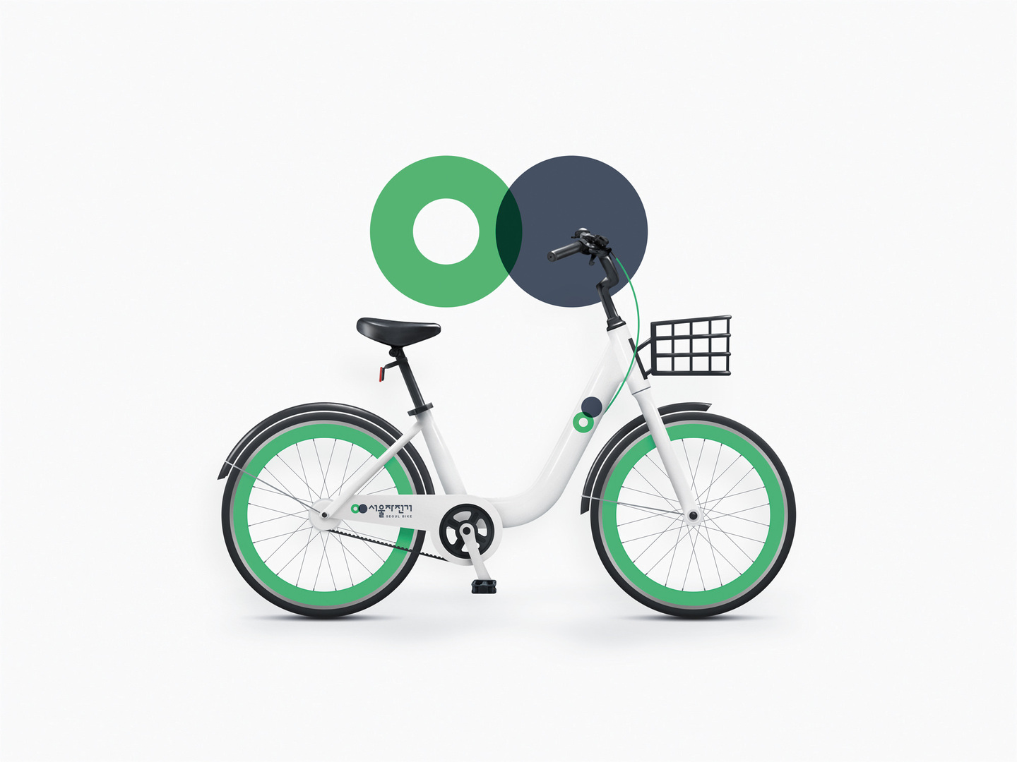 Seoul Public Bike is an unmanned rental system which can be used anywhere, anytime and by anyone, and which is run by the City of Seoul. In order to revitalise the public bike service and secure operational cost via sponsorship, a flexible brand identity was created. The logo with its two circles was applied to the bicycle design while the graphic elem-ents create a unified identity. The basic design elements are a combination of white and green, communicating a clean and eco-friendly image. The graphics on the bicycles can easily be changed to match sponsors’ advertising requirements.