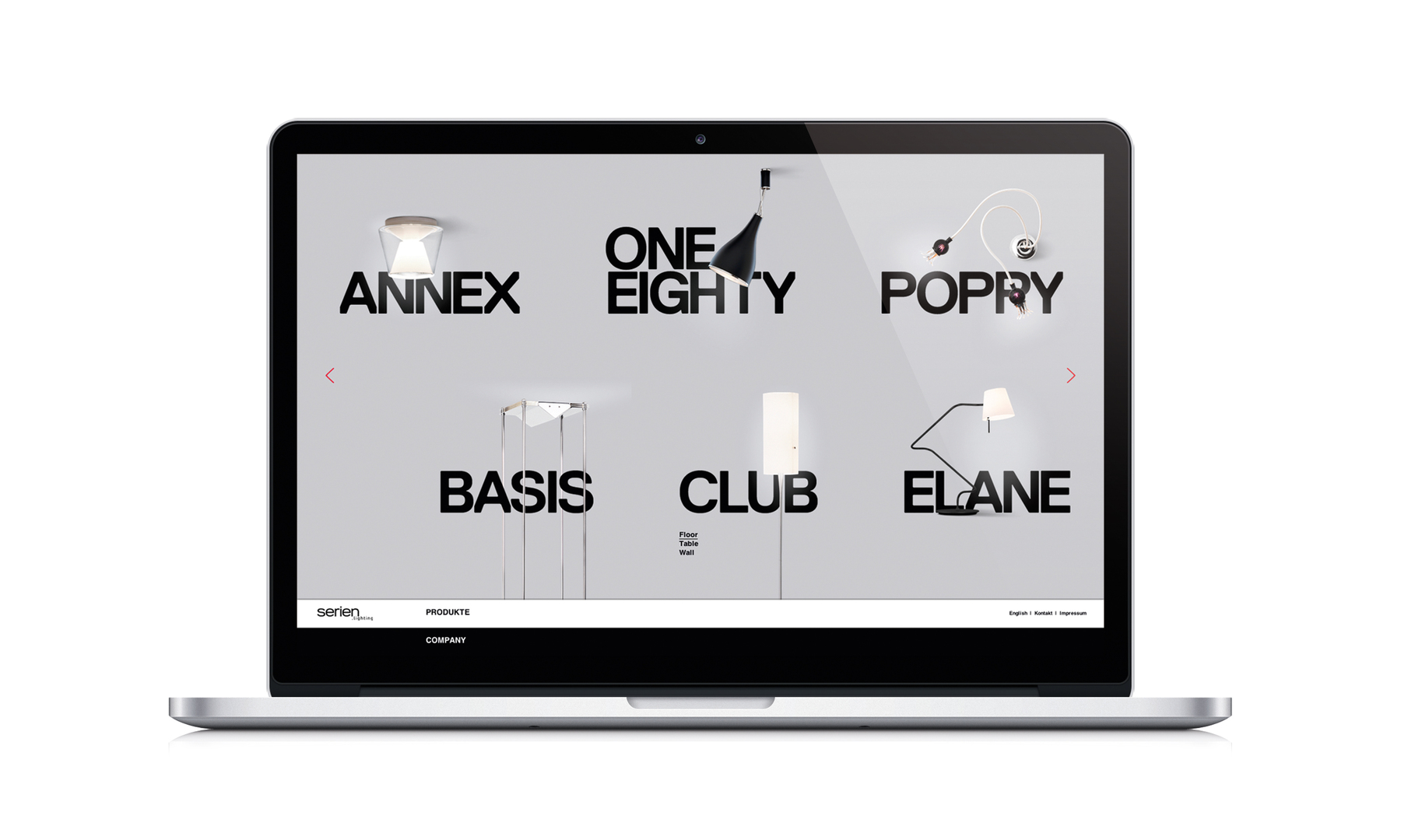 The goal in designing this website for the company serien.lighting was to convey core characteristics and topics related to a fascination with design, technology and light. It provides retailers with simple and clear access while also making the site interesting for visitors. Since what is special about every luminaire is also reflected in its name, each lighting unit is staged together with its name, thus forming an entity and becoming a single mini-brand. The website is one of the first noticeable signs in a series of restructuring and optimisation measures.