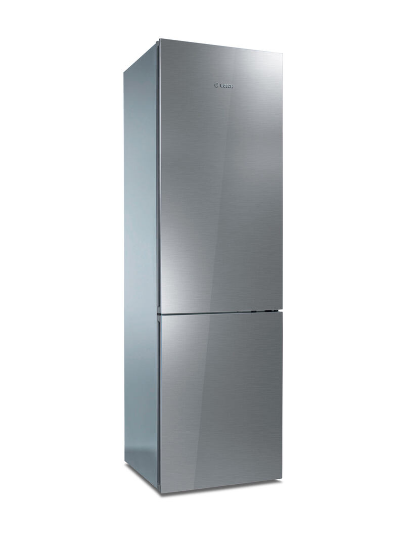 Das Besondere an dieser Kühl-Gefrier-Kombination aus der ColorGlass-Kollektion des Herstellers ist die Metall-hinter-Glas-Gestaltung der Front. Durch die Schichtung der unterschiedlich stark glänzenden Materialien entsteht ein prägnanter Tiefeneffekt, der durch das Logo, das über der Oberfläche zu schweben scheint, zusätzlich betont wird. Darüber hinaus tragen die rahmenlose Gestaltung der Glasfront sowie seitlich in Echtmetallprofile integrierte Griffe zur eleganten Anmutung dieses Geräts bei.