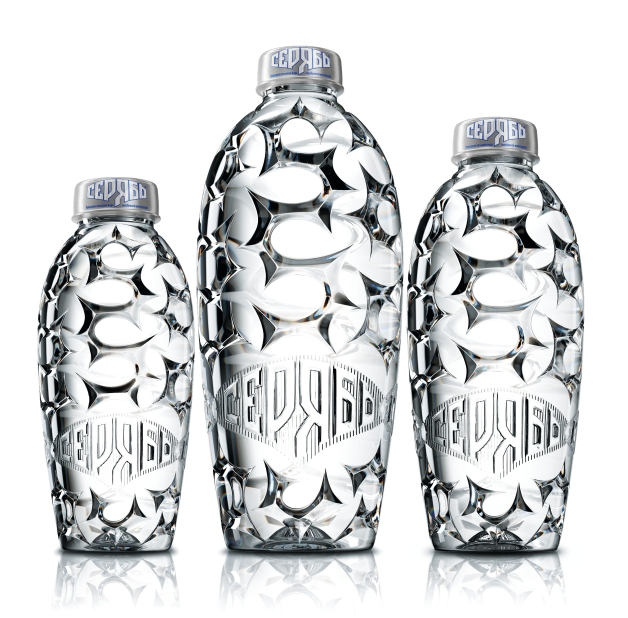 The brand name Seryab is derived from the Russian word for silver and was selected to emphasise the water’s purity. The striking surface structure of this PET bottle creates an attention-grabbing product design. The multifaceted indentations enable reflections of light reminiscent of a crystal bottle. The decision to not use a label leaves the content in question, thus sparking interest in the consumer. The word mark is prominently placed both on the cap and at the front of the bottle, while the reverse side features proverbs.