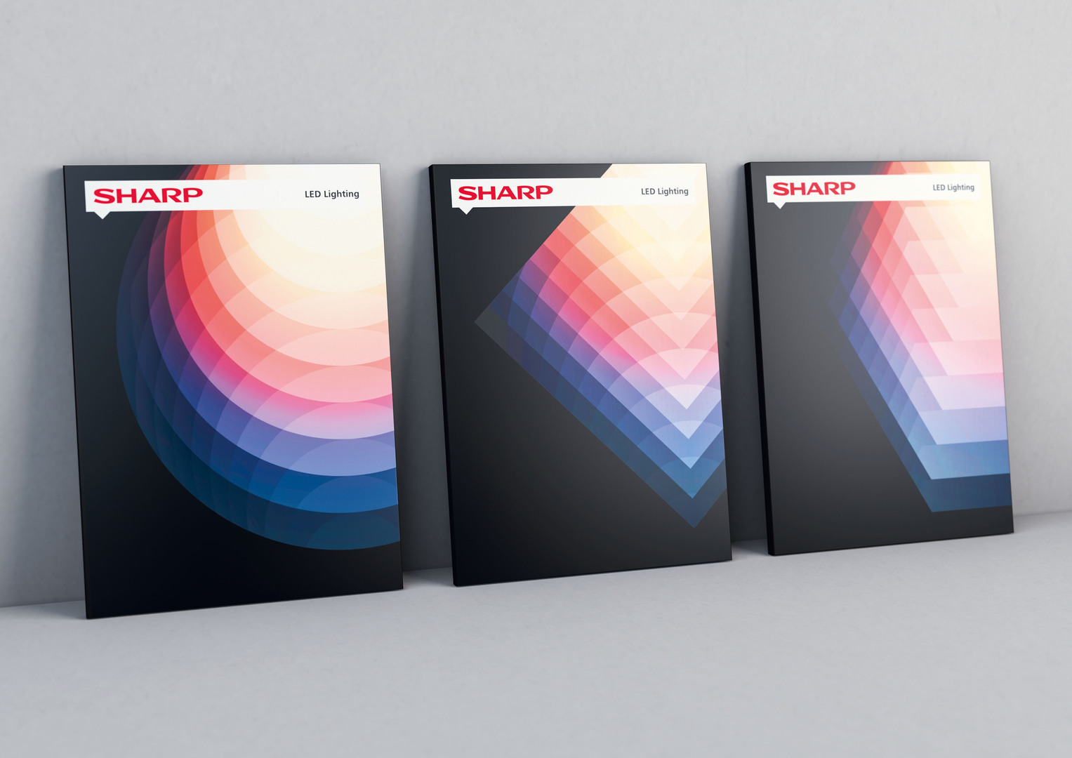 In developing the brand name and visual identity for the market entry of Sharp’s LED Lighting division, the global brand design was expanded to incorporate a new premium aspect. Since the manufacturer’s brand identity is primarily aligned with consumer marketing, the main task was to develop a design that meets the aesthetic expectations of architects and light designers alike, without losing the global corporate identity. The solution was a clean, geometric representation of light following a graphical principle that employs clarity and precision to distinguish Sharp products from the competition.