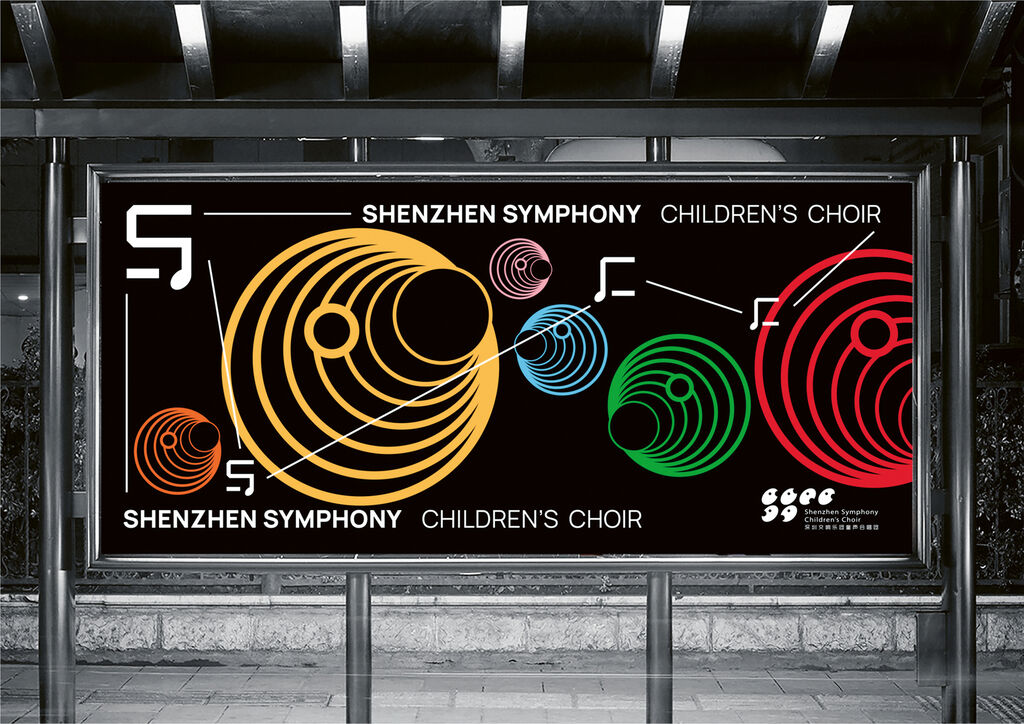 The brand design of the Shenzhen Symphony Children’s Choir combines concise graphics with colourful effects to create a visual identity that the target group can easily relate to. The logo comprises six symbols, which allude to singing children as well as musical notes. The position of the mouths represents the three different vocal registers in the choir: high, middle and low. The supporting graphic system is derived from sound waves, while the rich colours express the children’s lively temperament. Sound waves in six different sizes and in different colours are superimposed on each other, symbolising the intertwined beauty of different voices singing together.