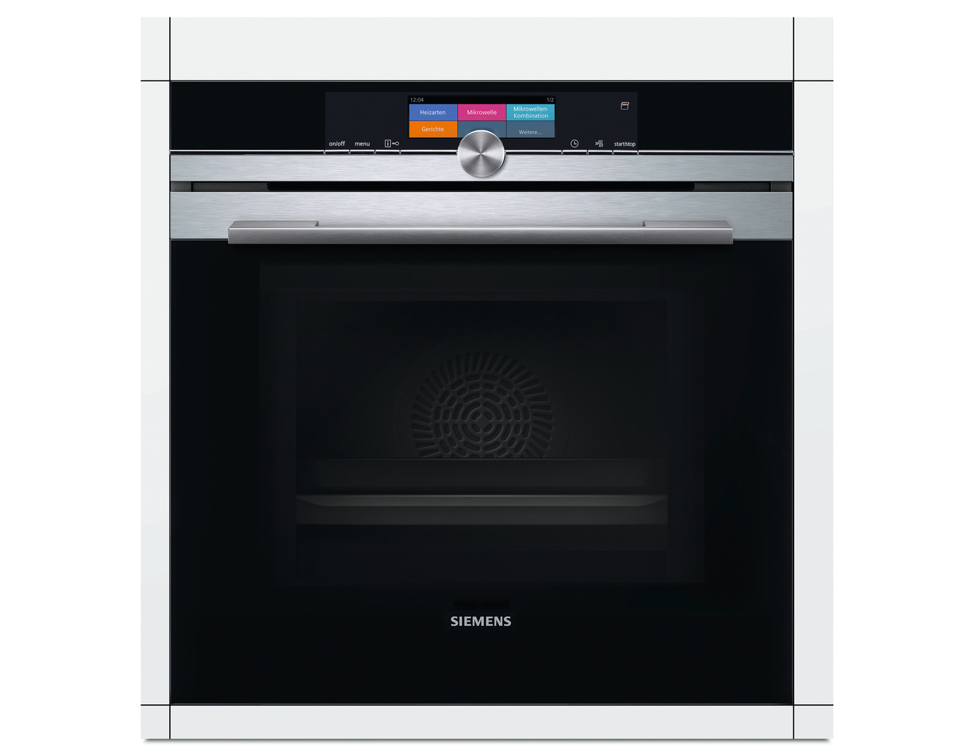 Dieser Mikrowellen-Backofen mit Dampfunterstützung ist Teil der Premium-Backofen-Baureihe des Herstellers. Eine klare Gestaltung, die Verwendung hochwertiger Materialien und eine neu entwickelte Benutzeroberfläche prägen das elegante Erscheinungsbild des Einbaubackofens. Der Ofen ist netzwerkfähig und mittels Home-Connect-App auch von unterwegs zu steuern, etwa um die Zeitvorwahl einzustellen. Die App bietet darüber hinaus eine große Auswahl an Rezepten, die auf den Backofen abgestimmt sind.