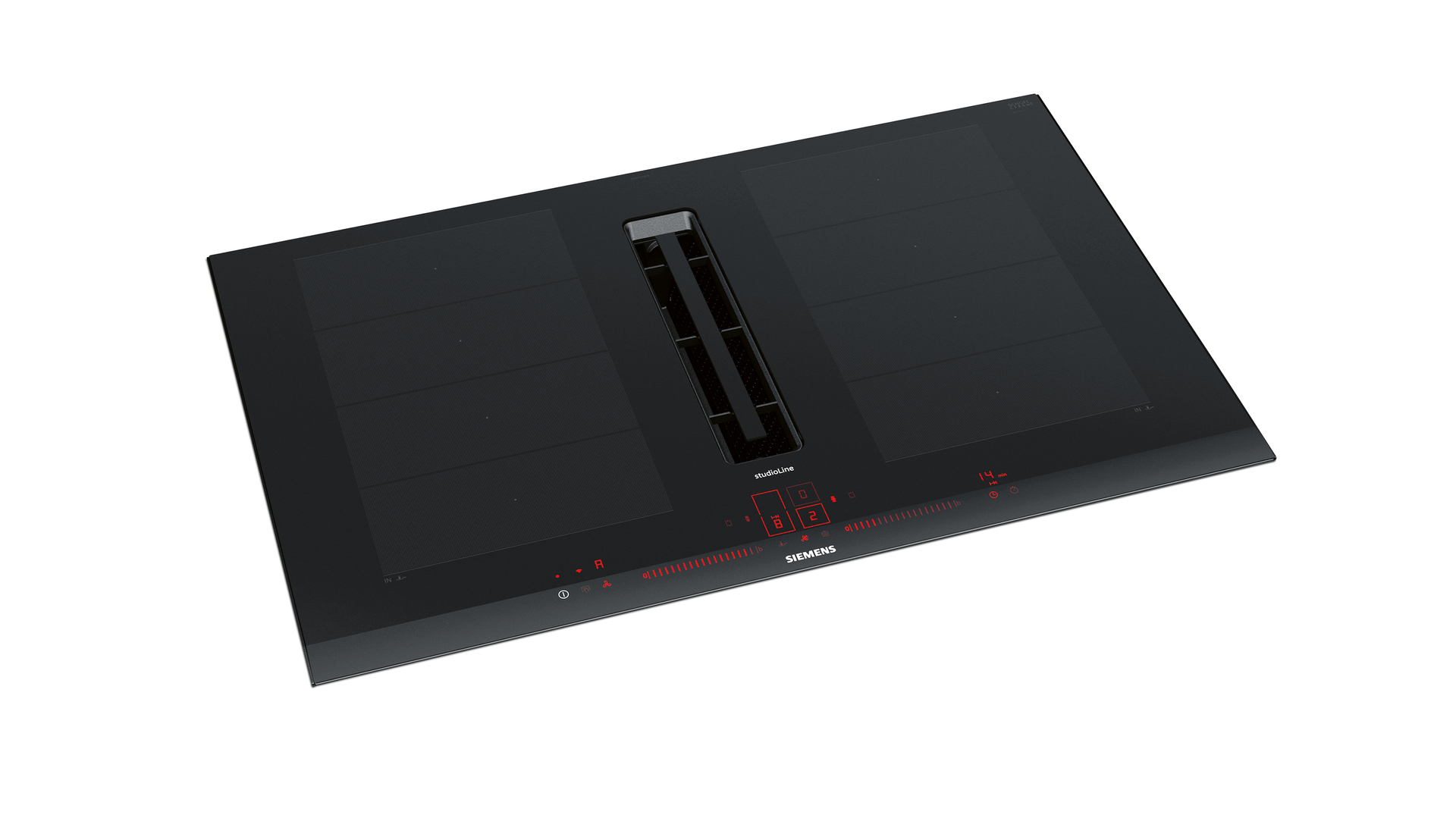 Diese innovative 2-in-1-Lösung besteht aus Induktionskochfeld und sensorgesteuertem Dunstabzug. Dabei ist die Lüftungsöffnung ohne Rahmen direkt in die schwarze Glaskeramik eingelassen. So steht dem reibungslosen Hantieren mit Töpfen, Pfannen und Brätern nichts mehr im Wege, und die nutzbare Fläche wächst um mehr als 40 Prozent. Für mehr Flexibilität beim Kochen können einzelne Kochzonen nach Bedarf zusammengeschaltet werden. Der inductionAir Plus arbeitet zudem besonders leise und ist leicht zu reinigen.